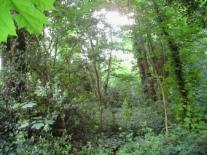 The soil is black or dark brown, grading to mid- or grey-brown in colour, with a well-mixed mull (non-acidic) humus layer; there are no sharp A-B horizon (soil/subsoil) boundaries, reflecting the Wood’s former garden status, but there is much woody litter and fibrous organic matter resulting from its more recent growth back to woodland (as well as from unfortunate and sometimes indiscriminate dumping of garden rubbish!). The surface is often highly compacted, producing puddles on well-trodden grassy areas. Soil texture is generally classified as clay or clay loam and the soil pH is typically 5.5 to 7. This neutral, clay-rich and easily weathered soil, with its rapid recycling and incorporation of nutients, is generally favourable to deciduous tree and shrub growth, but the water-retaining ‘blocky’ structure and low heat conductivity of clay soils is not so conducive to bulb, flower and vegetable gardening.